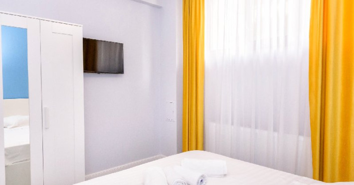 - Dormitor: Pat matrimonial (160 x 200 cm), TV LED diagonala 81 cm, dulap pt haine, uscator de par;