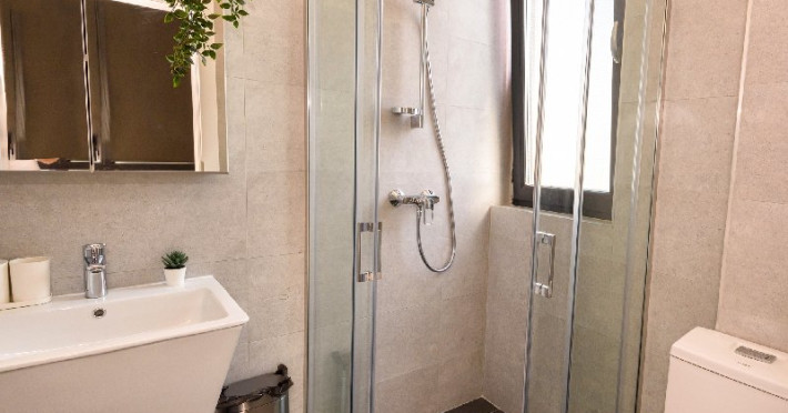Baie 1- Living 1: dus , wc , lavoar , oglinda baie , uscator de par
