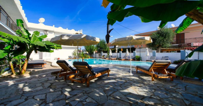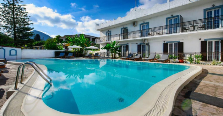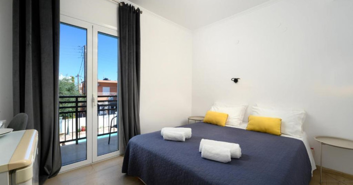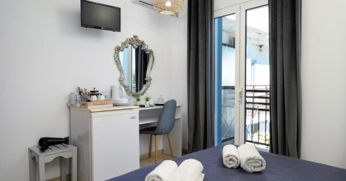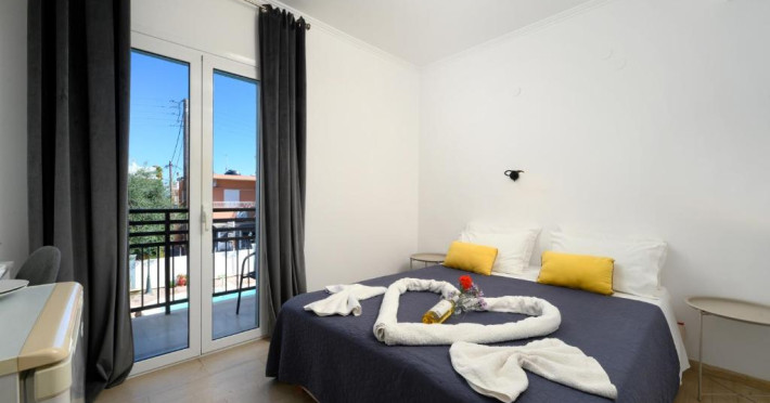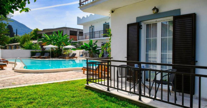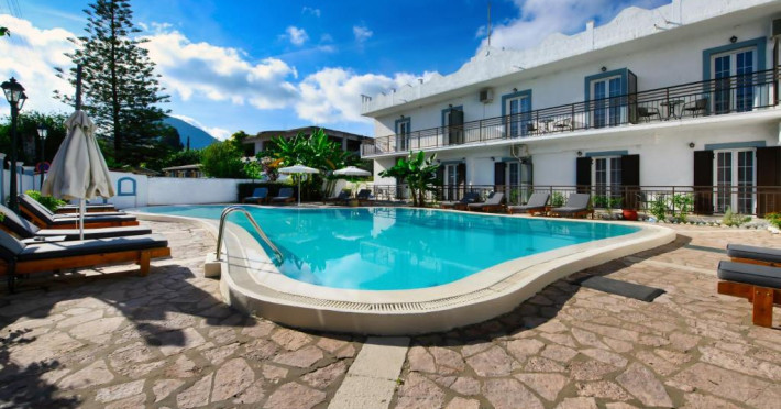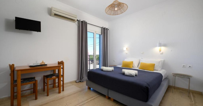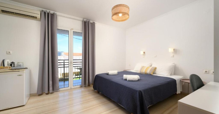 Aquarius Beach Hotel se află la 10 metri de plajă de nisip din Mesongi și are piscină in aer liber cu șezlonguri. In toate zonele hotelului este disponibil WiFi gratuit. Toate unitățile și de cazare sunt spațioase au aer și balcon privat mobilat.