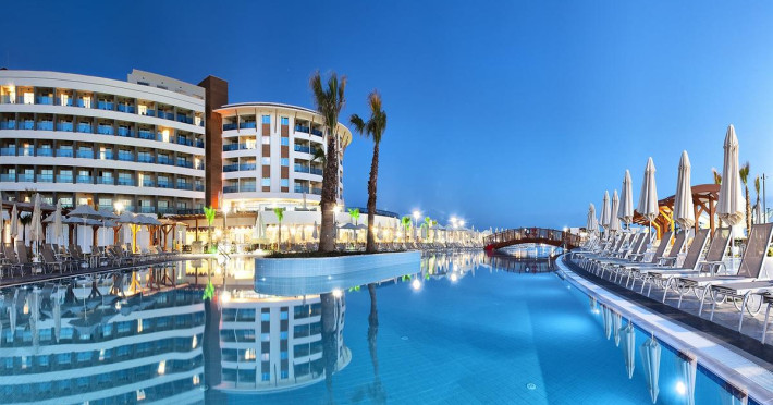 Hotelul dispune de urmatorele faciitati: mai multe restaurante, terase, baruri, gradina, zona cu plaja privata, piscina exterioara/ interioara, darts, karaoke, tenis de masa, camera de jocuri, teren de tenis, facilitati pentru copii, facilitati pentru persoanele cu dizabilitati, sala de fitness, sauna, masaj, baie turceasca, divertisment, animatori, mini club, facilitati pentru sporturi nautice, magazine, mini market, camera de bagaje, schimb valutar, receptie deschisa non stop si parcare privata.