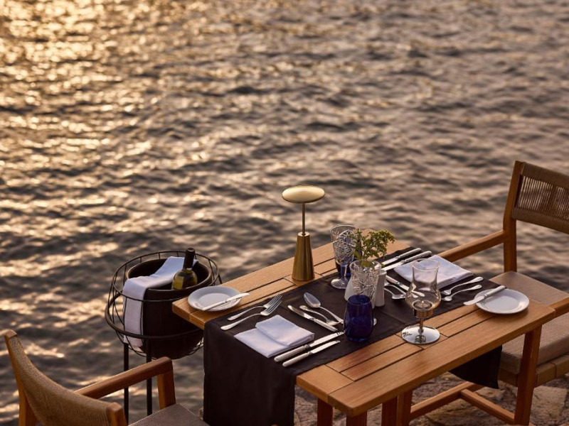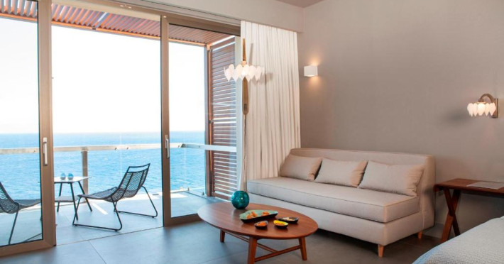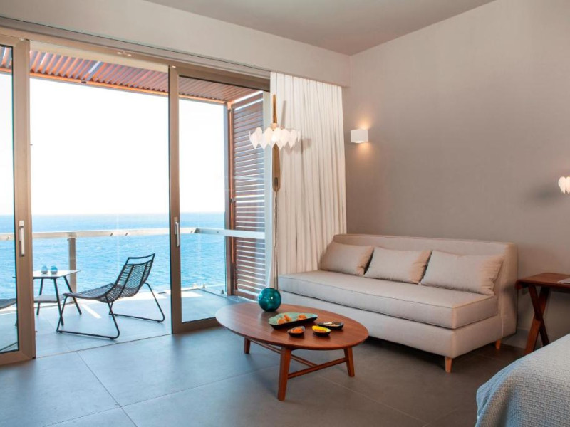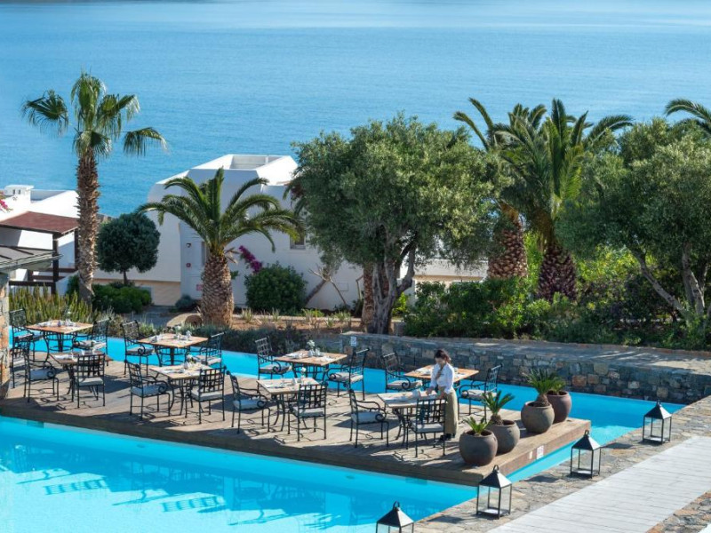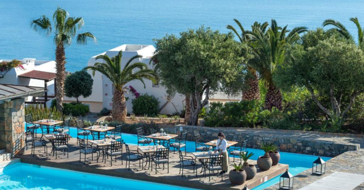 Oaspetii isi pot incep ziua cu un mic dejun tip bufet american. Masa de pranz include mancăruri mediteraneene si este servită la restaurantul Mirabello. Taverna Symposium, cu specific grecesc, serveste specialităti originale grecesti si cretane. Se pot face pregătiri pentru a cina pe plajă la lumina lumanărilor.