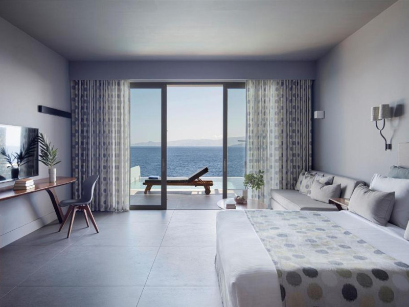 Amplasat pe o plajă de nisip privată, cu vedere la golful Mirabello, Aquila Elounda Village oferă o bucătărie premiată, un centru spa, un teren de tenis si 5 piscine in aer liber. Acesta oferă spatii de cazare cu vedere la mare si la grădină sau piscine private, amplasate in grădini luxuriante.