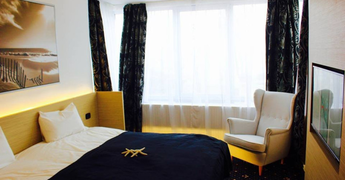 Partial sea view room standard sunt situate pe latura sudica, au 18 mp, sunt pozitionate la etajele 3,4 si 5 ale hotelului, sunt dotate cu un pat de 160/200 cm, o sofa (60/140 cm) in dreptul geamului, baile au un design modern, si sunt imbunatatite cu un mic birou langa sofa. Nu se poate acomoda pat suplimentar.