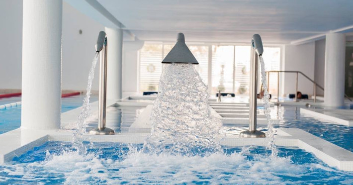 Masaj subacval pentru zona inferioara, masaj subacval pentru zona posterioara, masaj subacval pentru bazin si fese, alveole de masaj pentru spate si zona femurala, alveole de masaj dinamice adaptate pe diferite inaltimi cu program electronic de control, zona recuperatorie de mers contra curent cu masina de generat valuri, umbrela de apa tip cascada, cascade de apa pentru masaj cervical, zona de gheizere, zona de AquaGym, zona de fitness subacval cu biciclete si aparate subacvatice, culoare de inot de 25 de metri, zona de inot contra curent.