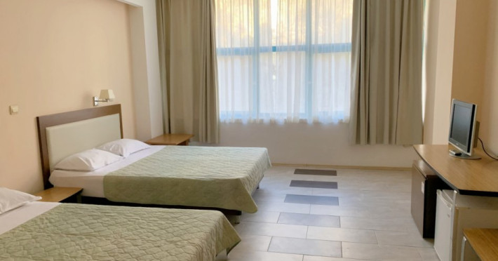 Hotelul ofera servicii All Inclusive si dispune de restaurant, piscina exterioara si piscina pentru copii. Oaspetii hotelului se vor bucura de frumoasa plaja premiata cu Blue Flag. O umbrela si doua sezlonguri (incepand cu randul 3) pentru fiecare camera sunt incluse in pret. Prosoapele de plaja si saltelele pot fi inchiriate contra cost.