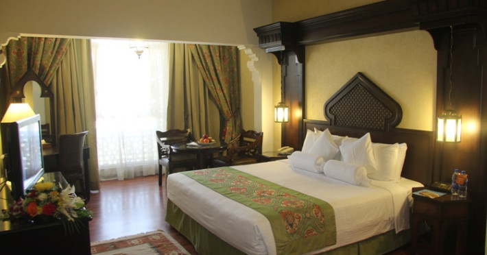 All rooms with Souq View - 30 sq. m room size, featuring a king size bed or two single beds - Complimentary High-Speed Wi-Fi - Work desk, voice mail, IDD telephones, in-room electronic safe - Tea/coffee making facility in room, iron with board - Welcome amenity in room upon arrival - Complimentary access to health club (Swimming Pool and Gym) - Pre-registration and welcome soft beverage
