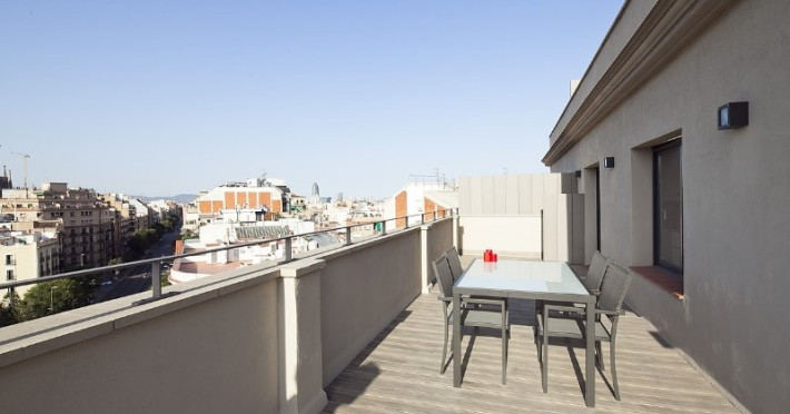 These apartments are spacious and elegant, are located in the Eixample district, 400 meters from Paseo de Gracia and the famous monuments of Gaudi. They have fantastic views of the city.La Sagrada Familia and La Monumental bullring are a 15 minute walk, while Plaza Catalunya is situated just a 10 minute walk. The Girona Metro Station, located 3 minutes walk, is 4 stops of Barceloneta and the beach.