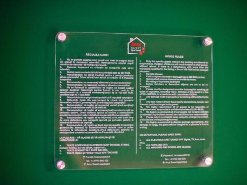 Looking for a home comfort: apartment Arca Sweet Apartment is located in Gura Humorului. This apartment is located in the very center of the city. Before going to bed, you can walk around the main landmarks of the city.Looking for a home comfort: apartment Arca Sweet Apartment is located in Gura Humorului. This apartment is located in the very center of the city. Before going to bed, you can walk around the main landmarks of the city.Want to be always on-line? Wi-Fi is available. Specially for tourists who travel by car, theres a parking zone. If you want to make your journey even more comfortable, you can order a transfer. Additional services that the apartment offers to its guests: a laundry and dry cleaning.Want to be always on-line? Wi-Fi is available. Specially for tourists who travel by car, theres a parking zone. If you want to make your journey even more comfortable, you can order a transfer. Additional services that the apartment offers to its guests: a laundry and dry cleaning.Heres what youll find in the room to have a rest after a long day: a shower and a TV. Please note that the listed services may not be available in all the rooms.Heres what youll find in the room to have a rest after a long day: a shower and a TV. Please note that the listed services may not be available in all the rooms.This property will not accommodate hen, stag or similar parties. Please inform Arca Sweet Apartment in advance of your expected arrival time. You can use the Special Requests box when booking, or contact the property directly with the contact details provided in your confirmation. Managed by a private hostDatorita dinamicitatii domeniului disponibilitatea ofertelor se modifica de la un moment la altul. De aceea ofertele sunt valabile in limita locurilor disponibile. Agentia nu este responsabila pentru eventualele neconcordante care pot aparea intre informatiile privind tarifele si alte detalii din site si informatiile primite in agentie. In aceste cazuri vor avea prioritate, intotdeauna, informatiile primite in agentie.