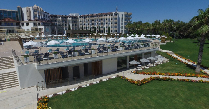 Descriere: Hotelul a fost deschis in anul 2004. Construit pe o suprafata de 47.000 mp, acesta dispune de 463 camere.Localizare: Hotelul este situat pe plaja, la 4 km fata de orasul Side, la 85 km fata de centrul orasului Antalya si la 75 km fata de aeroport.