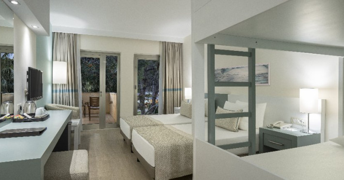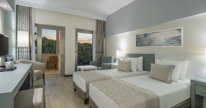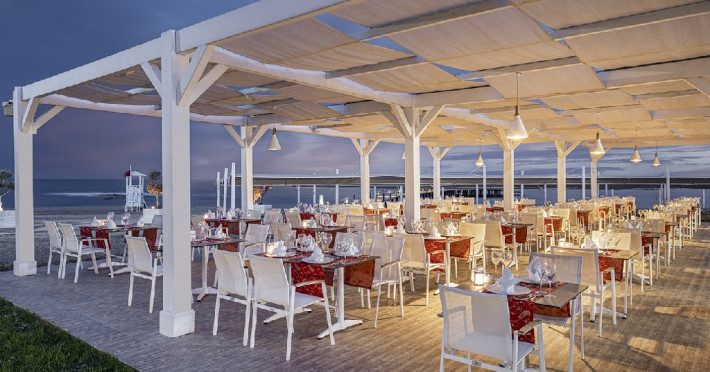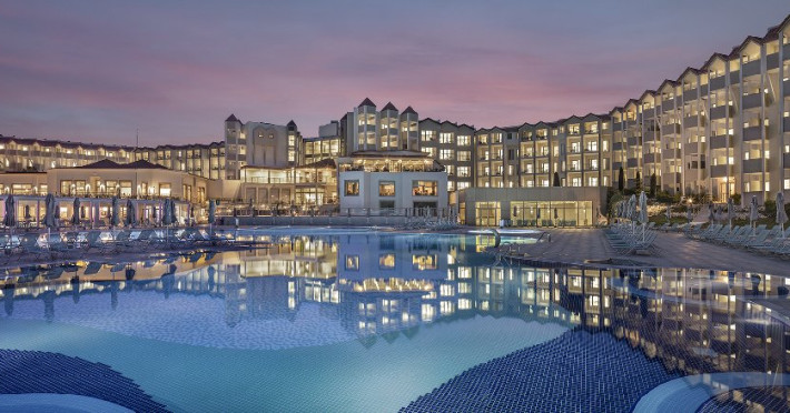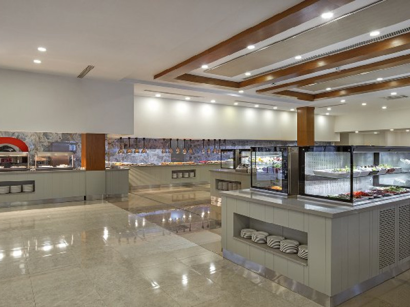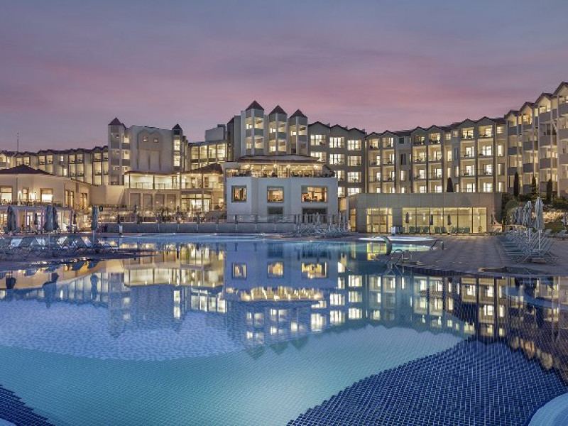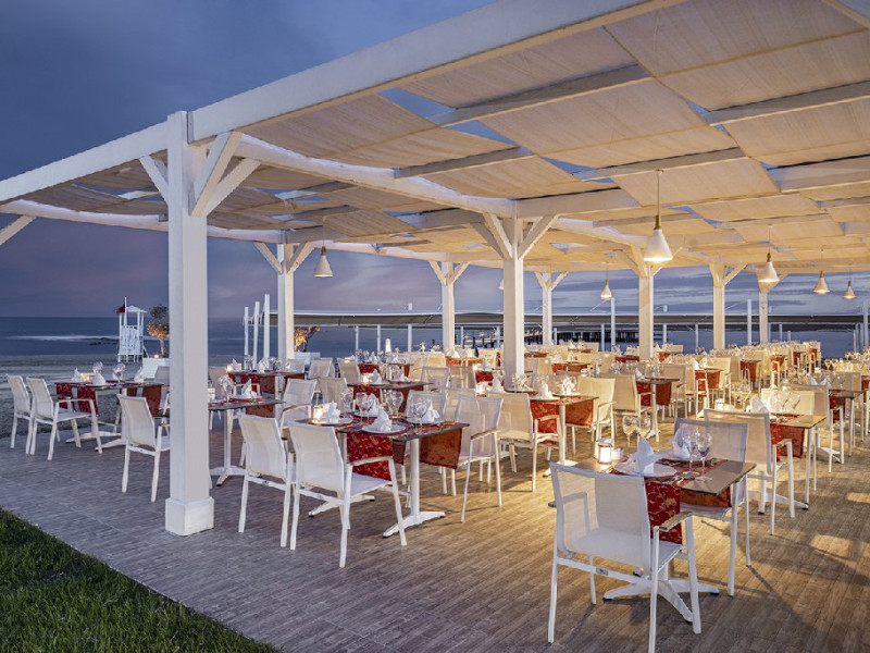 Facilitati hotel: Hotelul ofera oaspetilor sai urmatoarele facilitati: restaurant principal, 4 restaurante a la carte, 5 baruri, discoteca, patiserie, 4 piscine (piscina pentru adulti si copii, piscina interioara si piscina cu tobogane), internet wi-fi in lobby, aerobic, gimnastica, step, fitness, voley pe plaja, darts, sah, biliard, tenis de masa, animatie, baie turceasca, sauna, muzica live, mini club, junior club, loc de joaca pentru copii, mini disco, playstation, patut pentru copii la cerere, bufet pentru copii in restaurant.