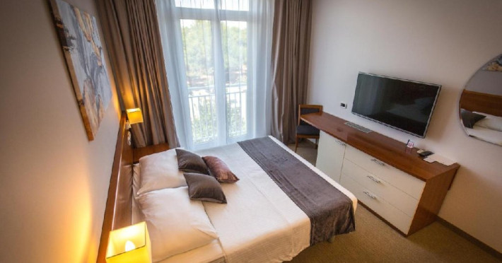 Facilitati camere: A/C, telefon, TV, seif, pat matrimonial, canapea, baie cu dus si uscator de par. Capacitate maxima: 2 adulti + 1 copil.