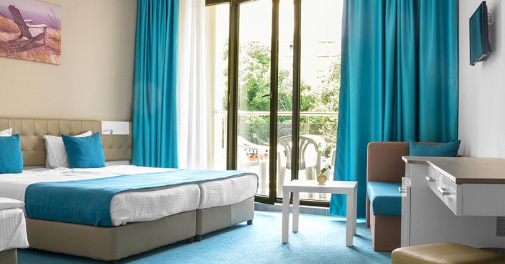 Hotelul este situat la 150 de metri de plaja si circa 250 de metri de centrul statiunii.