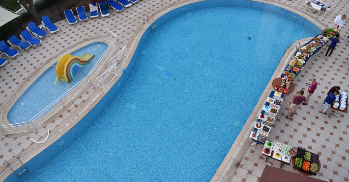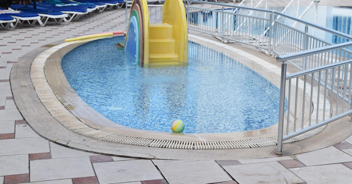 Copiii se pot distra la piscina special amenajată pentru ei.