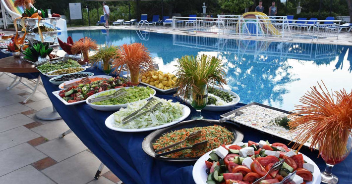 La Ares Blue Hotel oaspeții au la dispoziție un restaurant care servește mâncare în stil bufet. Preparate din bucătăria internațională așteaptă să fie degustate în fiecare zi. Masa poate fi servită atât în interior, cît si în aer liber, pe terasă, în funcție de vreme. Oaspeţii pot avea diverse băuturi răcoritoare sau alcoolice la bar.
