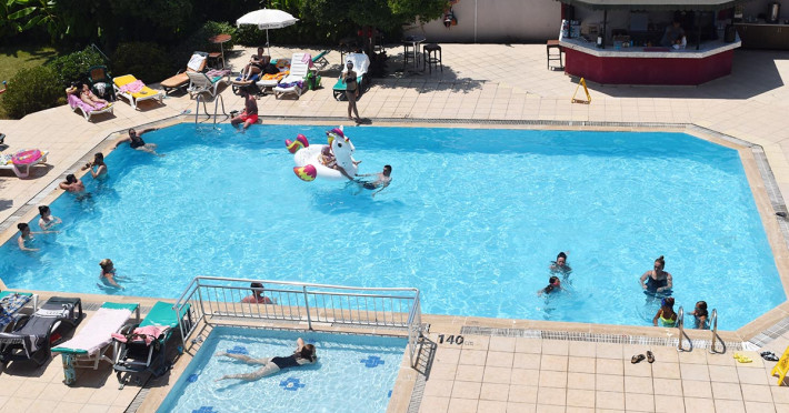 Copiii se pot distra la piscina special amenajată pentru ei.