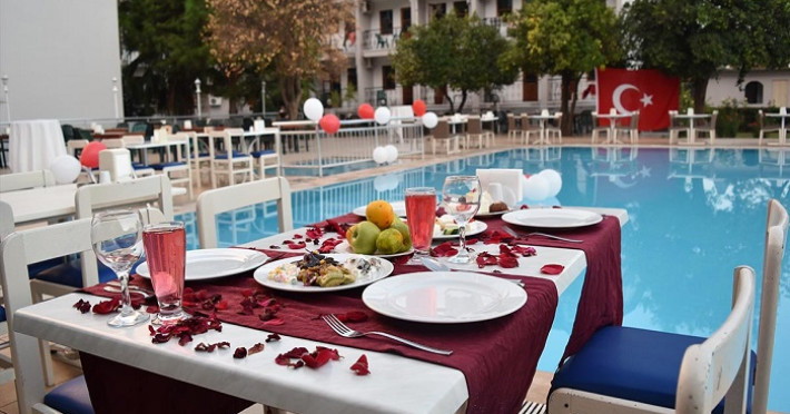 Hotelul Ares unde turistii pot gasi liniatea, confortul, frumusetea naturala si cele mai bune servicii. Hotelul este construit pe un teren de 4000 mp intre portocalii si florile care va vor transporta intr-o vacanta linistita printr-o gradină secreta în centrul orasului Kemer. La hotel Ares; care este situat intr-un cadru natural, oaspetii vor avea ocazia sa se bucure de liniste si relaxare, dar inca sa fie în centrul orasului.