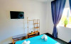 Camera tripla dealtfel ca si camera dubla este dotata si utilata complet: baie proprie cu cabina dus, feon, aer conditionat, frigider si TV LCD.