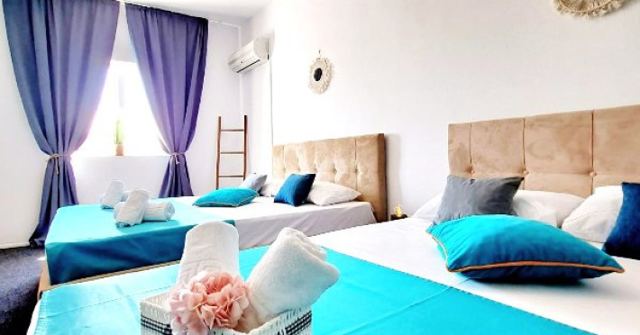 - In numar de 5, camere foarte spatioase, aproximativ 30 mp, formate dintr-un pat mare matrimonial 160/200 si 2 paturi de o persoana de 100/200.