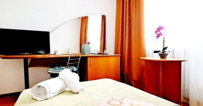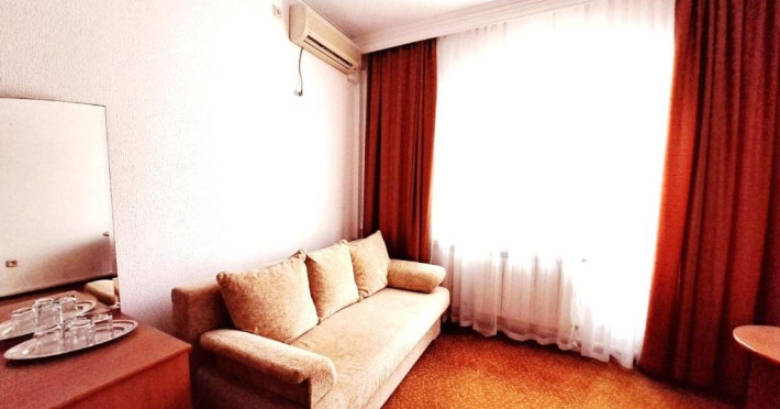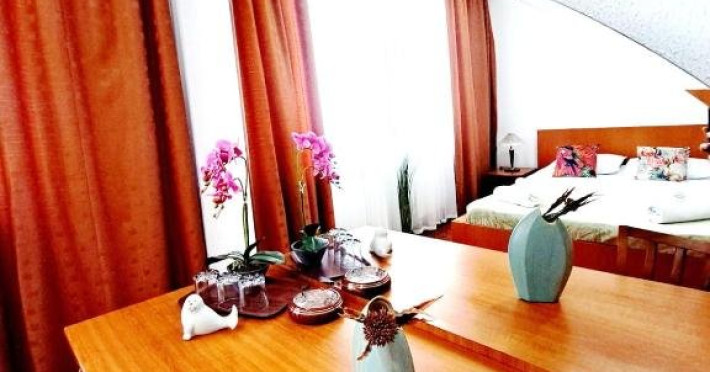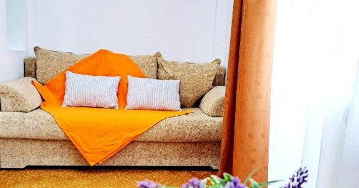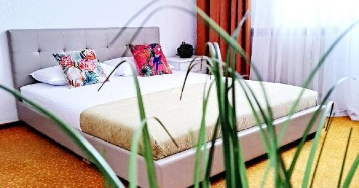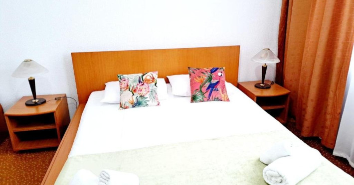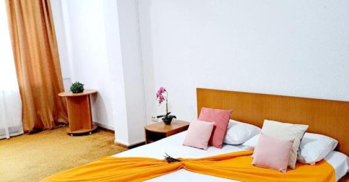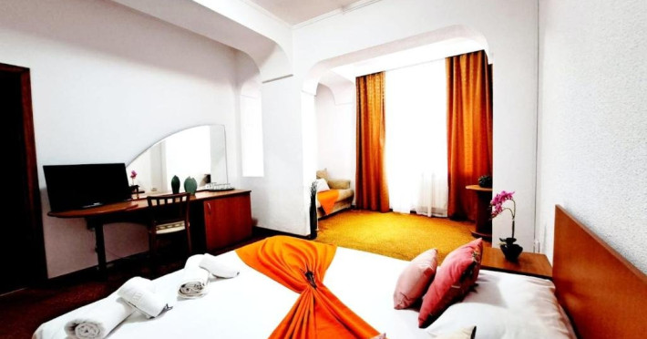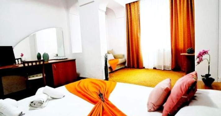 - Apartament decomandat idenpendet de hotel, cu intrare separata, foarte spatios aproximativ 70 mp, situat in curtea imensa a hotelului si structurat astfel: