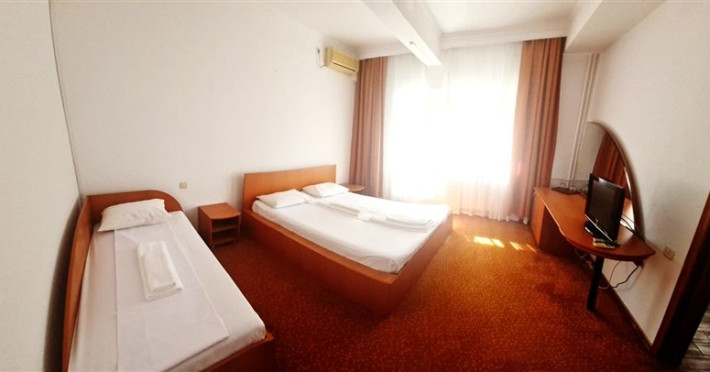 Camera tripla dealtfel ca si camera dubla este dotata si utilata complet: baie proprie cu cabina dus, feon, aer conditionat, frigider si TV LCD.