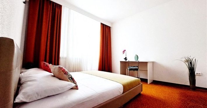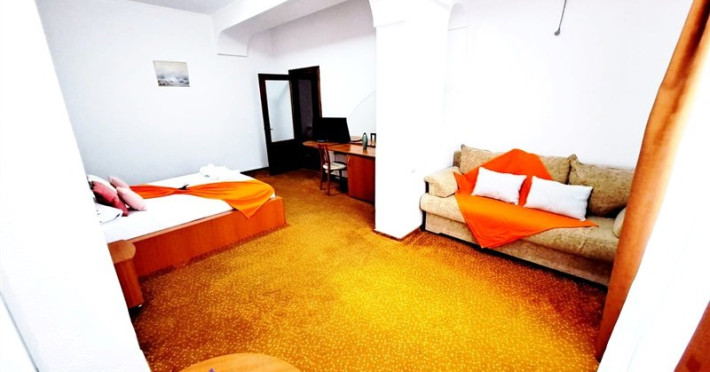 - Apartament decomandat idenpendet de hotel, cu intrare separata, foarte spatios aproximativ 70 mp, situat in curtea imensa a hotelului si structurat astfel: