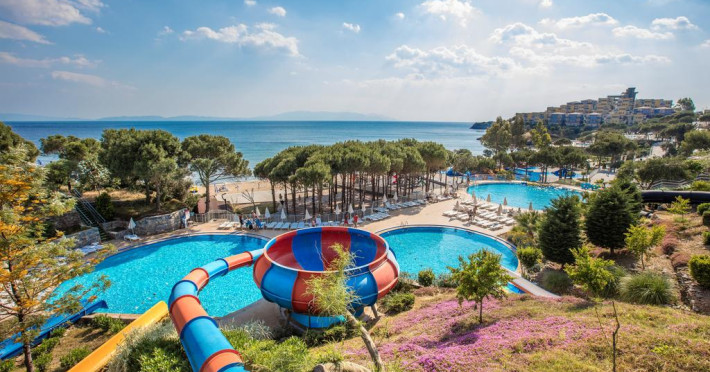 Aria Claros Beach & Spa Resort este un complex de 5 stele care se află pe malul mării, în Ozdere (Izmir), și oferă plajă privată, 3 piscine în aer liber, piscină interioară și centru spa cu o gamă variată de servicii. Facilitățile de la Aria Claros Beach & Spa Resort includ sală de fitness și teren de tenis. Pentru petrecerea timpului liber oaspeții au la dispoziție activități de agrement pe timpul zilei și programe de divertisment seara. Proprietatea are, de asemenea, servicii de recepție cu program non - stop, concierge și închirieri auto. Se oferă acces gratuit la internet Wi-fi în spațiile publice. Parcarea este disponibilă la proprietate gratuit.