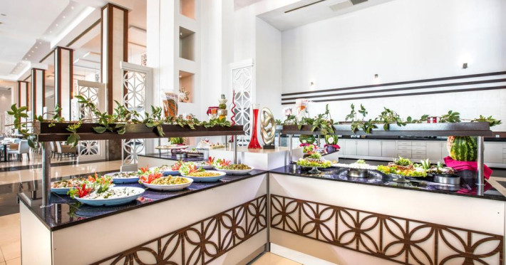 La Aria Claros Beach & Spa Resort oaspeții au la dispoziție 5 restaurante unde pot savura mâncăruri delicioase, în stil bufet sau à la carte. Preparate din bucătăria internațională, turcească și italiană, precum și preparate din pește propun mâncăruri pentru gusturi diverse. Masa poate fi servită atât în interior, cît si în aer liber, pe terasă, în funcție de vreme. 7 baruri, dintre care unul la piscină, sunt disponibile cu o ofertă variată de băuturi răcoritoare și alcoolice. În cadrul proprietății există și o cafenea care servește specialități din cafea și diverse delicatese.