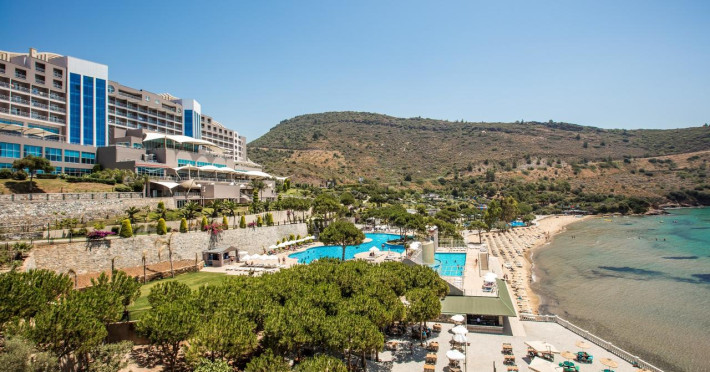 Acest complex situat direct pe plaja, dar pe un deal cu vedere la golful Claros si dipsune de unitati de cazare in regim all inclusive. Aeroportul din Izmir este localizat la 34 de km de hotel, iar orasul Kusadasi la doar 18 km.