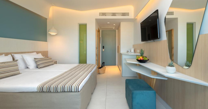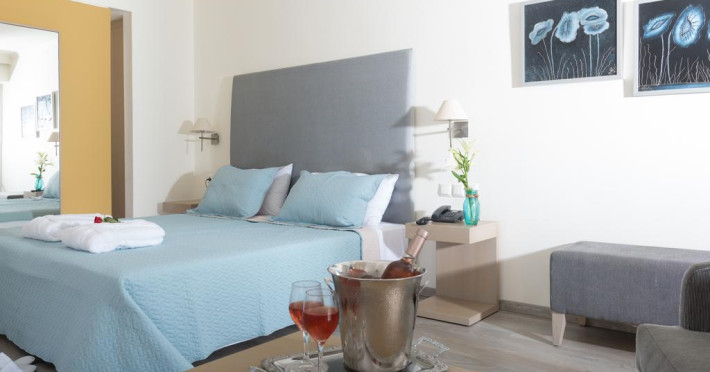 Sunt disponibile 238 camere. Fiecare cameră dispune de cană-fierbător. Camerele confortabile de la Arina Beach au pardoseală de gresie/ marmură, aer condiționat, Tv cu canale prin satelit și seif. În camere există baie cu cadă sau duș prevăzută cu foehn. Unele camere au balcon cu vedere la mare, unde oaspeții pot admira apusul sau răsăritul soarelui. Oaspeții au acces gratuit la serviciul Wi-fi în camere. Curățenia in cameră se face zilnic. Toate camerele spațioase de la Arina Beach au canapea în living, ceea ce oferă un plus de confort. Fiecare unitate de cazare are frigider. Proprietatea oferă camere pentru familie cu o suprafață mai mare și un număr mai mare de paturi față de cele standard. Se pot rezerva de asemenea camere pentru nefumători.