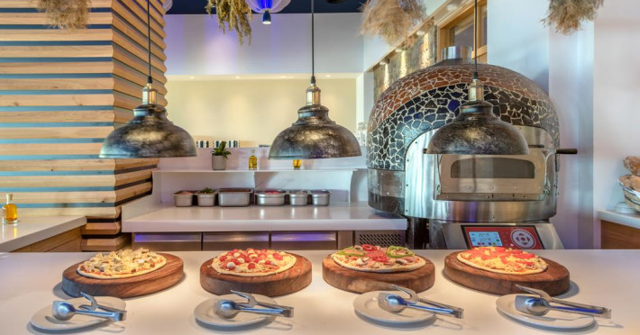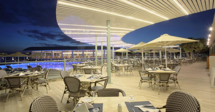 La Arina Beach oaspeții au la dispoziție 2 restaurante unde pot savura mâncăruri delicioase, în stil bufet sau à la carte. Preparate din bucătăria grecească și internațională așteaptă să fie degustate în fiecare zi la micul dejun, prânz și cină. Masa poate fi servită atât în interior, cît si în aer liber, pe terasă, în funcție de vreme. Oaspeţii pot avea diverse băuturi răcoritoare sau alcoolice la bar. În cadrul proprietății există și un snack bar care servește băuturi și gustări. Pentru cei cu anumite nevoi de nutriție, Arina Beach oferă meniuri pentru diete speciale.