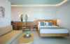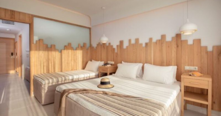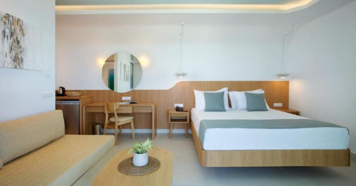 Camerele și bungalourile sunt concepute pentru a vă oferi un confort maxim și se bucură de priveliști superbe către Marea Cretei. Fiecare cameră are aer condiționat cu control individual, TV prin satelit și DVD player, precum și o terasă sau balcon mobilat. Un seif este, de asemenea, disponibil pentru oaspeți.