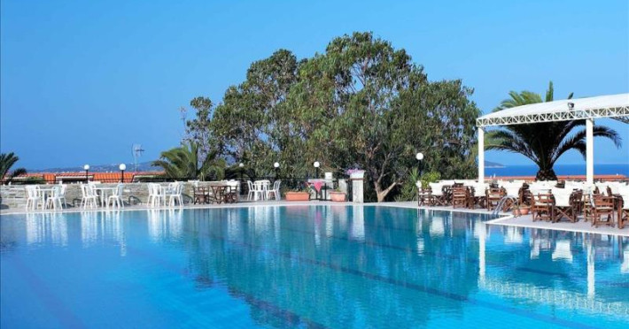 Hotelul dispune de un centru SPA, restaurant, taverna, bar la piscina, bar principal, discoteca, miniclub pentru copii si loc de joaca, mini-market, teren de tenis, curte si o plaja organizata cu locuri de relaxare. Hotelul dispune de 500 de m de piscina acoperita, cat si de o piscina pentru copii amenajata cu tobogane si pune la dispozitia turistilor mai multe sporturi acvatice.