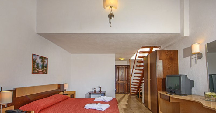 Hotelul dispune de un numar de 234 de camere (duble standard, studiouri, apartamente, massiionette, suite), avand balcoane cu vedere la mare, fiind dotate cu aer conditionat, telefon, TV prin satelit, baie cu dus sau cada, uscator de par si frigider. Camerele pastreaza stilul arhitectonic specific regiunii in care hotelul este amplasat.