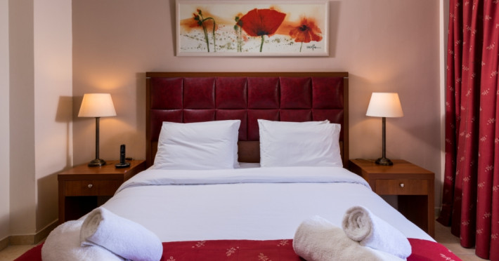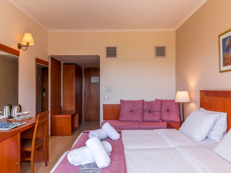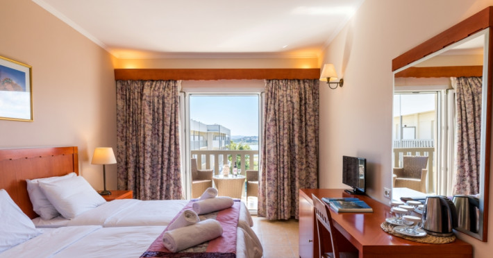 A/C, TV, telefon, radio, minibar, frigider, filtru de cafea, masa de calcat, radiator, seif, uscator de par, baie, balcon.