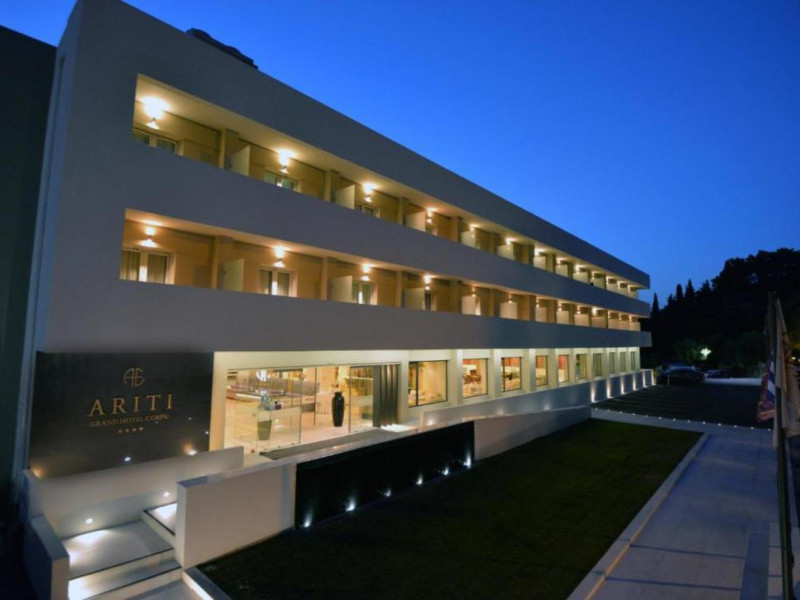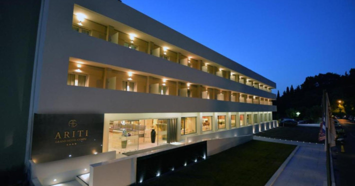 The sparkling Greek Island of Corfu is home to the 4-star Ariti Grand Hotel, a cliff-side location at Kanoni, 4km from Corfu town. Welcoming business and leisure visitors to its contemporary city facilities, the 4-star Ariti Grand Hotel has 156 inviting rooms and suites over 6 floors, set in landscaped gardens. You can enjoy restaurant dining, bars, lounge and panoramic terrace; soak-up the rays at the pool (open from May to October with separate children's pool), or in the gardens and relax or workout at the nearby fitness, spa and tennis courts availability. With Concierge services and friendly hospitality, the 4-star Ariti Grand Hotel is a fine option to book into and experience the beauty of Corfu Island, Greece.