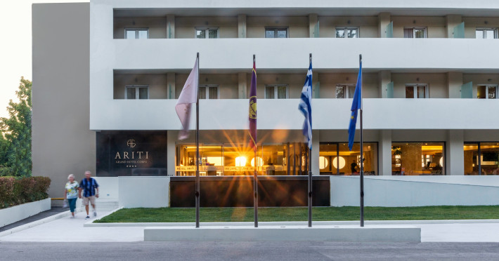 The sparkling Greek Island of Corfu is home to the 4-star Ariti Grand Hotel, a cliff-side location at Kanoni, 4km from Corfu town. Welcoming business and leisure visitors to its contemporary city facilities, the 4-star Ariti Grand Hotel has 156 inviting rooms and suites over 6 floors, set in landscaped gardens.The sparkling Greek Island of Corfu is home to the 4-star Ariti Grand Hotel, a cliff-side location at Kanoni, 4km from Corfu town. Welcoming business and leisure visitors to its contemporary city facilities, the 4-star Ariti Grand Hotel has 156 inviting rooms and suites over 6 floors, set in landscaped gardens.