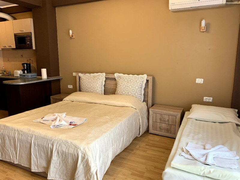 Studiourile sunt compuse din kitchineta utilata, pat matrimonial si pat suplimentar , baie proprie si balcon cu mobilier adecvat.