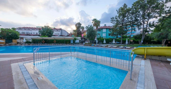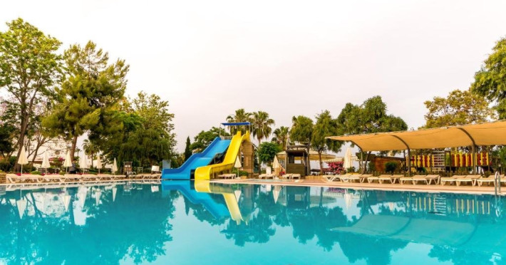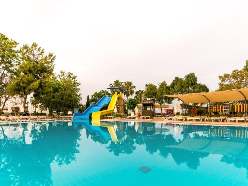 Facilitati hotel: Oaspetii pot beneficia de restaurant principal, bar, piscina exterioara,sezlonguri si umbrele, centru fitness, centru spa, programe de animatie, teren de tenis, tenis de masa, dart, volei, aerobic.