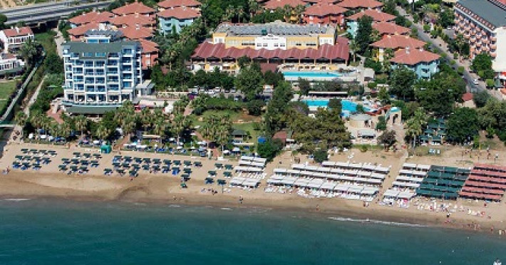 Locatie: Hotelul este localizat in statiunea Alanya, la 100 km de aeroportul din Antalya si la 22 km de orasul Alanya. Facilitati hotel: Hotelul detine o zona de plaja privata cu nisip fin, bar pe plaja si dotata cu sezlonguri si umbrele de soare, la 150 metrii. 2 Piscine exterioare sunt disponibile atat pentru adulti cat si pentru copii. Pe langa piscina copii mai au acces la un loc de joaca si un mini club. Restaurantul principal serveste o varietate de preparate internationale in stil bufet. Snack bar, Lobby bar, Pool bar Facilitati camere: baie cu dus, uscator de par, televizor, telefon, seif minibar SPA & WELLNESS: • Baie turcească - inclus • Saună - inclus • Masaj cu spumă – peeling - extra cost • Pachete de masaj - extra cost Animație si sporturi: • Activități sportive zilnice • Spectacole de noapte • Baschet • Sporturi nautice motorizate și ne-motorizate • Piscină cu tobogane • Muzică live • Biliard, • Tenis de masă • Aerobic • Polo pe apă • Dart, • Șah • Volei pe plajă • Terenuri de tenis (1 teren hard) • Centru de fitnessLocalizare