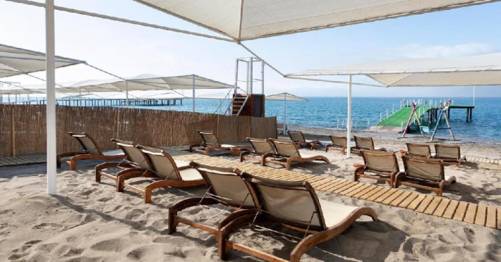 Descriere:Hotelul de 5 stele este amplasat pe plaja proprie cu nisip si pietricele din Bogazkent/Belek.