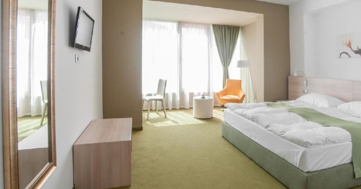 Minibarul din camera este dotat cu o varietate de bauturi, cipsuri. Fiecare camera a hotelului are in dotare un miniseif electronic care se afla in dulap.