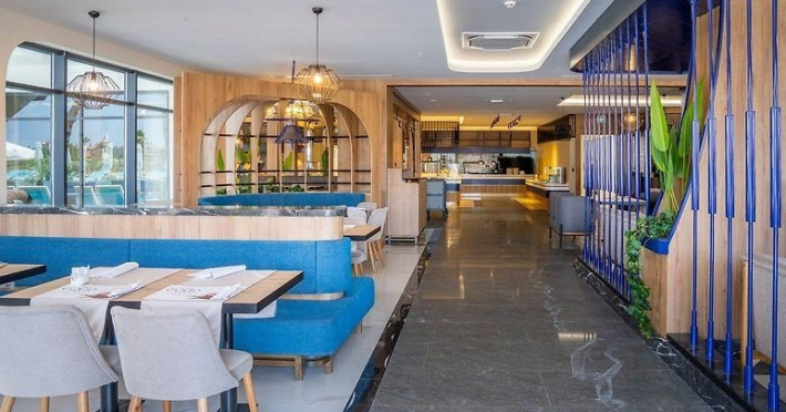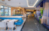 Facilitati hotel: Hotelul pune la dispozitia turistilor: restaurant, piscina exterioara, interioara, piscina pentru copii, aqua park, loc de joaca, miniclub pentru copii, centru spa si wellness cu baie turceasca si masaj, centru fitness, baschet, boccia, volei pe plaja, gimnastica in apa, minifotbal, tenis de masa, aerobic, darts, concursuri, jocuri de biliard, animatie, seri tematice, discoteca, spectacole cu DJ, sezlonguri si umbrele, salon de infrumusetare.