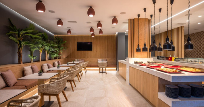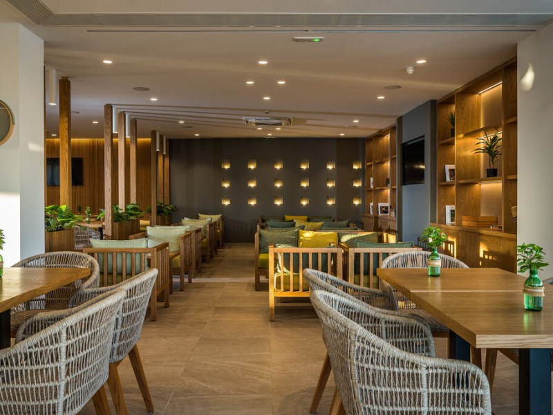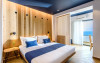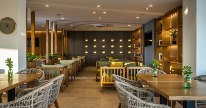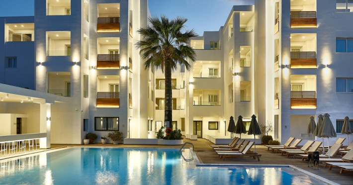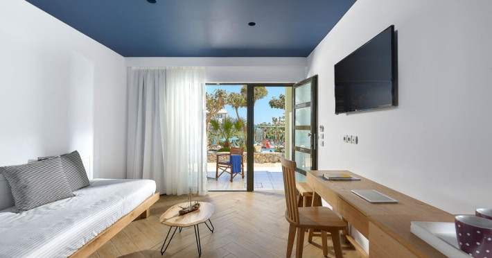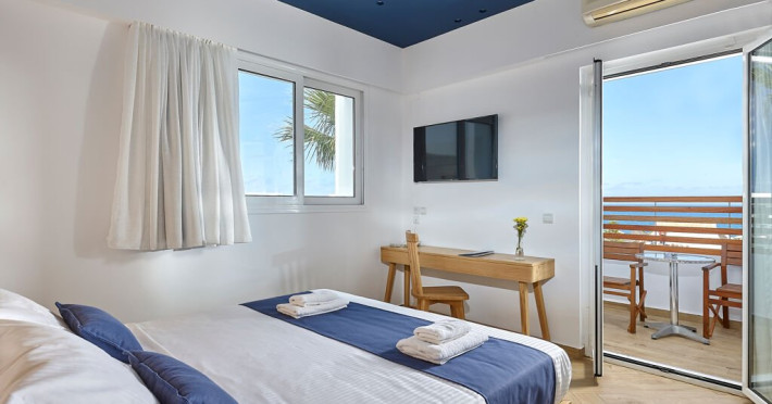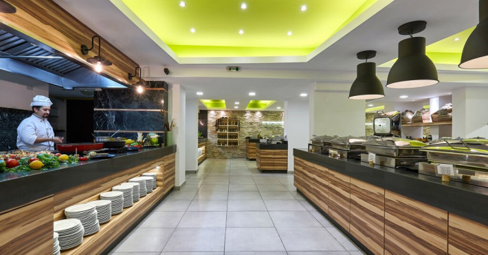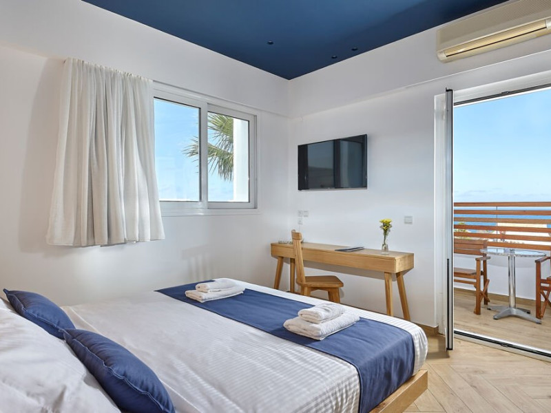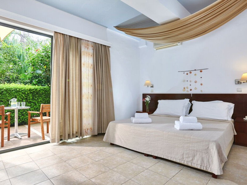 Facilitati hotel: Proprietatea pune la dispozitie patru piscine cu apa de mare, mini parc acvatic cu tobogane pentru copii si adulti, sezlonguri si umbrele gratuite la piscina, sala de fitness renovata, terenuri sportive, mini golf, padel (contra cost), sala de jocuri, parcare si o varietate de zone de relaxare. Centrul Spa ofera sauna, baie de aburi, jacuzzi, mini piscina, cabine de masaj si terapii specializate (contra cost). Oaspetii se pot bucura de restaurantul principal si barurile Votsalo, Pool Bar si Kedros. Pentru copii exista mini club, loc de joaca, piscina cu tobogane si programe zilnice de animatie.