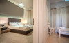 Fiecare cameră dispune de mașină pentru preparare cafea sau ceai și fierbător Camerele de la Armonia Boutique Hotel sunt dotate cu aer condiționat, Tv cu canale prin satelit și seif. În camere există baie cu cadă, foehn și articole de toaletă gratuite. Unele camere au balcon cu vedere la mare sau la grădină. Oaspeții au acces gratuit la serviciul Wi-fi în camere. Curățenia in cameră se face zilnic. Anumite camere au zonă de relaxare cu canapea și cadă cu hidromasaj care asigură un plus de confort și răsfăț. Fiecare unitate de cazare include o chicinetă utilată cu frigider și ustensile de bucătărie. De asemenea, sunt disponibile o zonă de luat masa și un cuptor pentru prepararea mâncărurilor. Proprietatea oferă camere pentru familie cu o suprafață mai mare și un număr mai mare de paturi față de cele standard. Se pot rezerva de asemenea camere pentru nefumători.