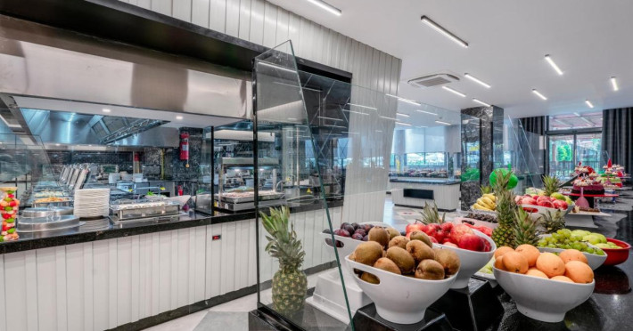 Detine restaurant principal, a la carte restaurant, restaurant pe plaja si snack restaurant + patiserie plus baruri in interior si exterior.
