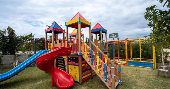 Veti gasi intr-o gradina cultivata o piscina mare si o piscina pentru copii, in continuare o piscina cu 6 tobogane cu apa, terase pentru plaja în jurul episodului, un bar la piscina, un snack bar si un bar pe plaja. Prosoape de plaja, sezlonguri si umbrele de soare sunt oferite gratuit pentru confortul dumneavoastra.