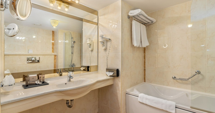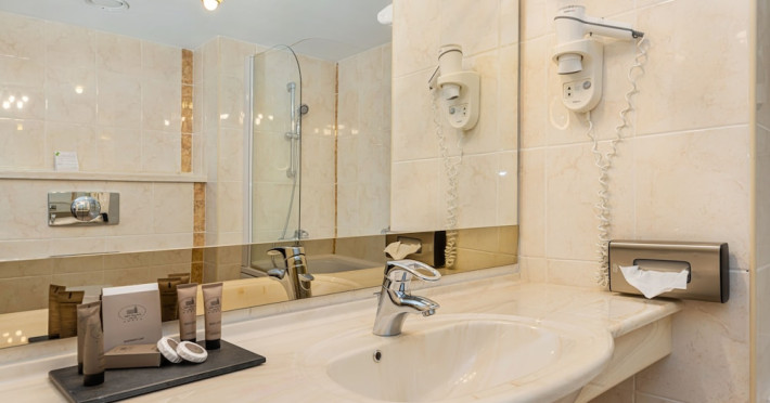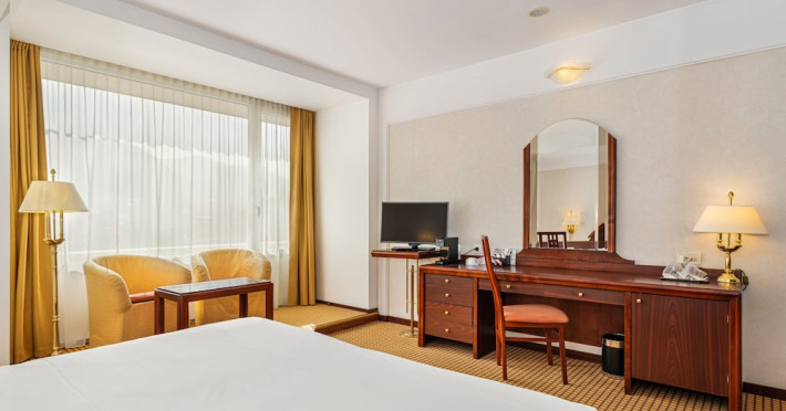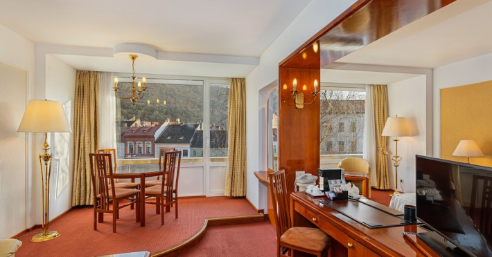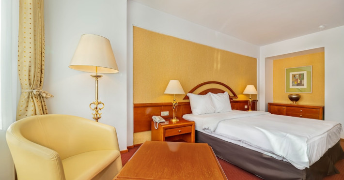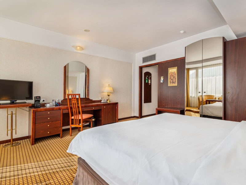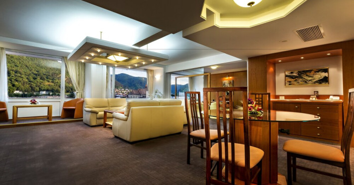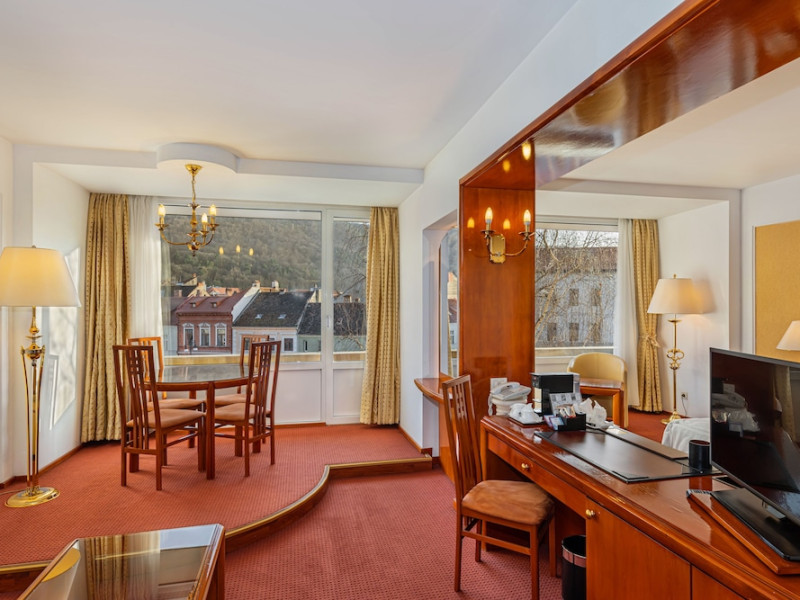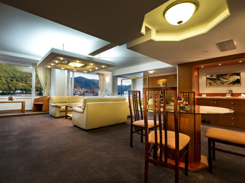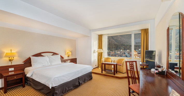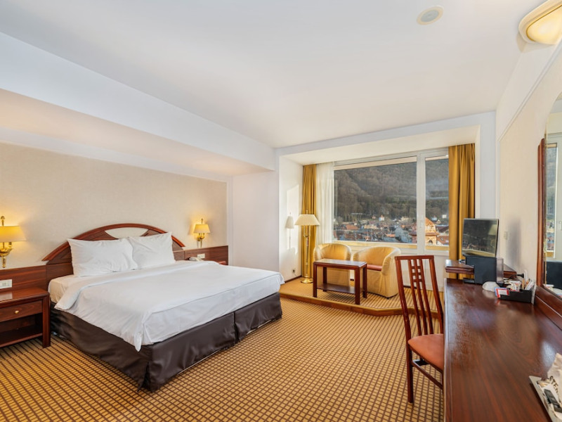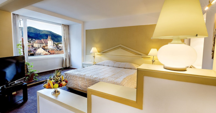 Overlooking the Tampa Mountain and the medieval historic quarter of Brasov, the traditional Hotel Aro Palace faces the Central Park. It features spacious and luxurious accommodations and free internet access. The rooms have air conditioning, cable TV and bathrobes. They are designed in warm colors and have carpeted floors. Guests can sample Romanian and European cuisine at the hotels restaurant and enjoy the views over Brasovs Citadel from the Belvedere Club, which is on Hotel Aro Palaces top floor. The hotels Night Bar is decorated with marble, wood and Art Deco elements. The chandeliers and large mirrors create a special atmosphere where guests can sip their favorite beverages. Aro Palace Spa & Wellness Center offers various treatments and beauty procedures. It features a swimming pool, saunas, massage areas and a gym.WiFi is available in all areas and is free of charge. Private parking is available on site (reservation is not possible) and costs RON 72 per day. Pets are allowed. Charges may apply. Children of all ages are allowed. Children 2 and under stay for free when using an available crib. Children from 3 to 12 years old stay for 180Â lei per person, per night when using an available extra bed. People 13 and up stay for 220Â lei per person, per night when using an available extra bed. Any type of extra bed or crib is upon request and needs to be confirmed by management. Additional fees are not calculated automatically in the total cost and will have to be paid for separately during your stay.Checkin Time: 15:00Checkout End Time: 12:00Hotel important information: Reservations with stay dates between 29.11 and 03.12.2023 will include a sweet jolly corner at breakfast with seasonal sweets: gingerbread, butter cookies, American pancakes, as a complementary packet on behalf of the hotel, and a sweet treat for kids at the check in. Please note that if the guests name is different than the one originally stated on the booking confirmation, guests have to present the reservation number. Please note that the property may pre-authorize your card at any time after making the booking. When traveling with pets, please note that an extra charge of EUR 50 per pet per night applies. Only pets under 10 kg in weight are allowed.Datorita dinamicitatii domeniului disponibilitatea ofertelor se modifica de la un moment la altul. De aceea ofertele sunt valabile in limita locurilor disponibile. Agentia nu este responsabila pentru eventualele neconcordante care pot aparea intre informatiile privind tarifele si alte detalii din site si informatiile primite in agentie. In aceste cazuri vor avea prioritate, intotdeauna, informatiile primite in agentie.