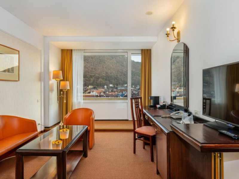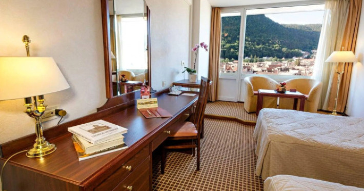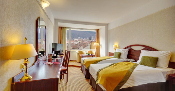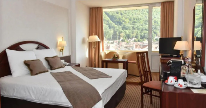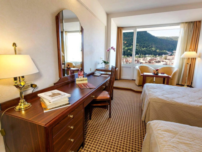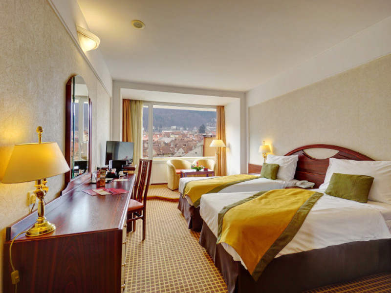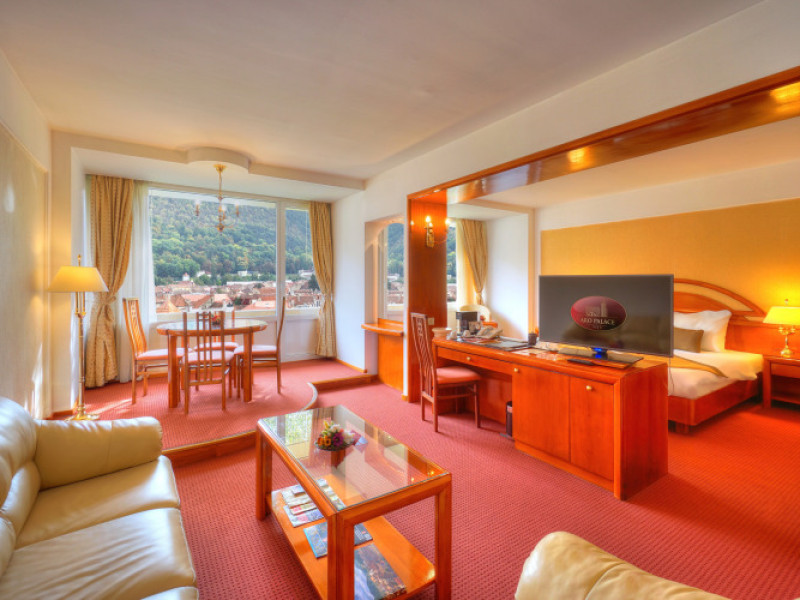 Sophisticated but very comfortable hotel Aro Palace Hotel is located in Brasov. This hotel is located in walking distance from the city center.Sophisticated but very comfortable hotel Aro Palace Hotel is located in Brasov. This hotel is located in walking distance from the city center.Spend an evening in a nice atmosphere of the bar. Its time to have a nice meal! Stop by the restaurant. Want to be always on-line? Wi-Fi is available. The beauty and wellness services: a massage room, a sauna, a solarium, a spa center and a doctor.Sports fans are going to love a fitness center and a gym. You wont be bored as at the hotel you will find a library. Swimming fans are going to enjoy a pool and an indoor pool. For business meetings, there is a conference hall.Want to have an excursion? Consult the tour assistance desk of the hotel. For the free movement around the city, the hotel offers a transfer for you. Accessibility: there is an elevator/lift. Additional services that the hotel offers to its guests: a laundry, dry cleaning, an ATM, ironing, press, car rental, a safe-deposit box and a concierge.The staff of the hotel will be happy to talk to you in English, Spanish, Italian, German and French.Spend an evening in a nice atmosphere of the bar. Its time to have a nice meal! Stop by the restaurant. Want to be always on-line? Wi-Fi is available. The beauty and wellness services: a massage room, a sauna, a solarium, a spa center and a doctor.Sports fans are going to love a fitness center and a gym. You wont be bored as at the hotel you will find a library. Swimming fans are going to enjoy a pool and an indoor pool. For business meetings, there is a conference hall.Want to have an excursion? Consult the tour assistance desk of the hotel. For the free movement around the city, the hotel offers a transfer for you. Accessibility: there is an elevator/lift. Additional services that the hotel offers to its guests: a laundry, dry cleaning, an ATM, ironing, press, car rental, a safe-deposit box and a concierge.The staff of the hotel will be happy to talk to you in English, Spanish, Italian, German and French.In the room, there is an alarm clock, a TV, a mini-bar, a bathrobe and slippers. Please note that the listed services may not be available in all the rooms.In the room, there is an alarm clock, a TV, a mini-bar, a bathrobe and slippers. Please note that the listed services may not be available in all the rooms..1 RON not included 185 per guest per nightPlease note that if the guests name is different than the one originally stated on the booking confirmation, guests have to present the reservation number.Datorita dinamicitatii domeniului disponibilitatea ofertelor se modifica de la un moment la altul. De aceea ofertele sunt valabile in limita locurilor disponibile. Agentia nu este responsabila pentru eventualele neconcordante care pot aparea intre informatiile privind tarifele si alte detalii din site si informatiile primite in agentie. In aceste cazuri vor avea prioritate, intotdeauna, informatiile primite in agentie.