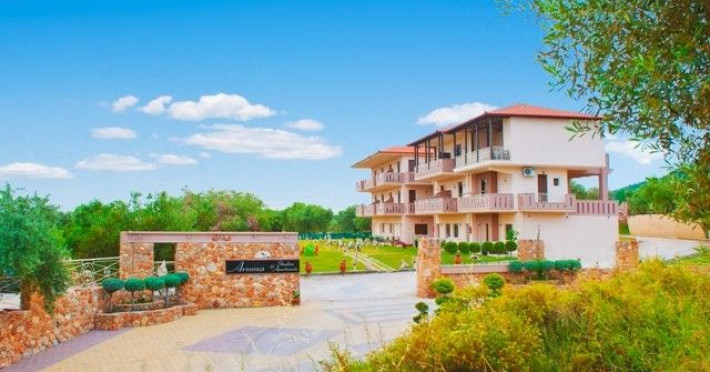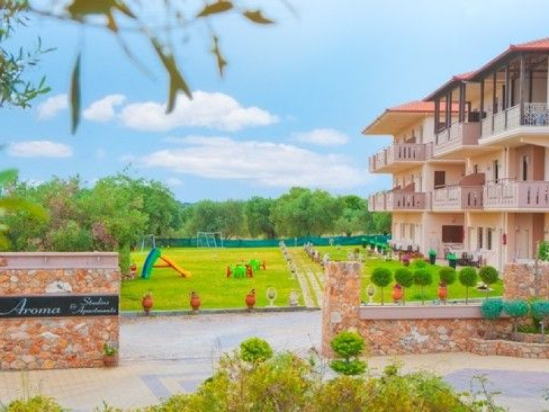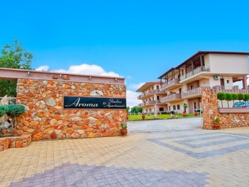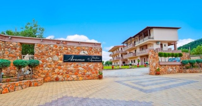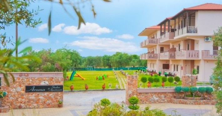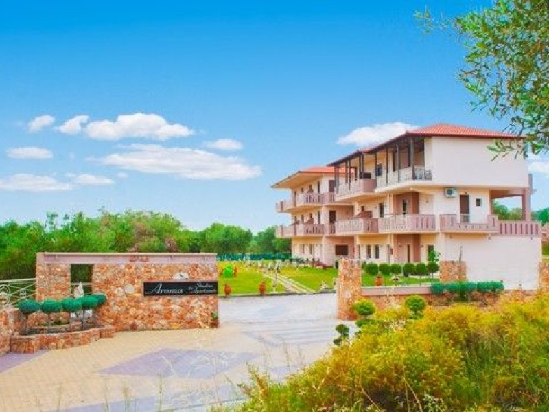 “Aroma” is built (July 2009) in a spacious property of 8.000 square metres with age-long olive trees. The estate incorporates advanced and safe venues and it utilizes the local materials in order to succeed a functional and elegant supremacy. The guest can find a capacious and safe parking space as well as an organized BBQ. The estate comprises of: four Studios that can accommodate from two to three people, seven apartments that can accommodate up to four people two apartments that can accommodate up to five people and four apartments that can accommodate up to six peopleDatorita dinamicitatii domeniului disponibilitatea ofertelor se modifica de la un moment la altul. De aceea ofertele sunt valabile in limita locurilor disponibile. Agentia nu este responsabila pentru eventualele neconcordante care pot aparea intre informatiile privind tarifele si alte detalii din site si informatiile primite in agentie. In aceste cazuri vor avea prioritate, intotdeauna, informatiile primite in agentie.