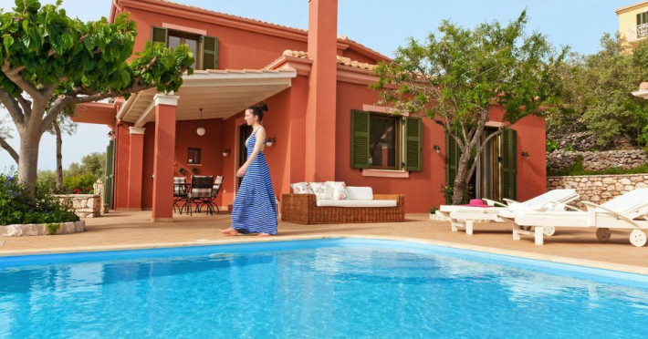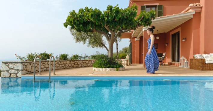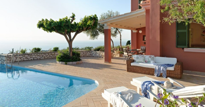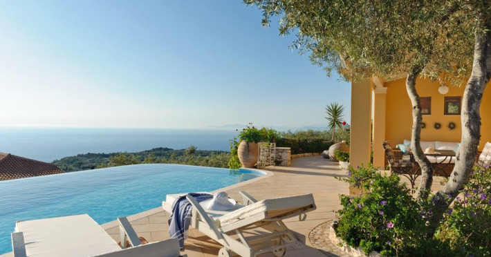 The contemporary architecture, elegant design, sophisticated decor and modern comforts of the art blue villas offer facilities of the highest quality while blending in with the big blue and natural wonders of the Ionian. A panoramic location, set on the side of a verdant hill on Lefkadaâs northwestern coast, you can gaze into the Ionian Sea, which appears to rise up and embrace the sun during the magical sunset. An idyllic location which also provides all the comforts you require for a great stay, as it offers easy access to the town of Lefkada (7km) , the traditional tourist villages Agios Nikitas (5km) and Tsoukalades (700m). The most beautiful beaches, Kathisma and Pefkoulia, with their deep blue waters are located just a breath away for those anxious to enjoy their swim not to mention the location of the islandâs most cosmopolitan bars, perfect for an evening drink. High quality aesthetics, with attention to detail and authenticity, is our main characteristic. The elements that harmoniously compose the residence interiors include wood, marble, granite, earth tones, furniture hand-built by traditional craftsmen and unique works of art. Romantic cobbled pathways discretely illuminated at night snake through lavender and jasmine. The colours and fragrance of the flowers delight the senses, offering you an enthralling experience that will make your stay unforgettable. Art blue comes straight from an artistâs palette, a few brushstrokes against a verdant green backdropâ¦exclusively for unique holidays.Datorita dinamicitatii domeniului disponibilitatea ofertelor se modifica de la un moment la altul. De aceea ofertele sunt valabile in limita locurilor disponibile. Agentia nu este responsabila pentru eventualele neconcordante care pot aparea intre informatiile privind tarifele si alte detalii din site si informatiile primite in agentie. In aceste cazuri vor avea prioritate, intotdeauna, informatiile primite in agentie.